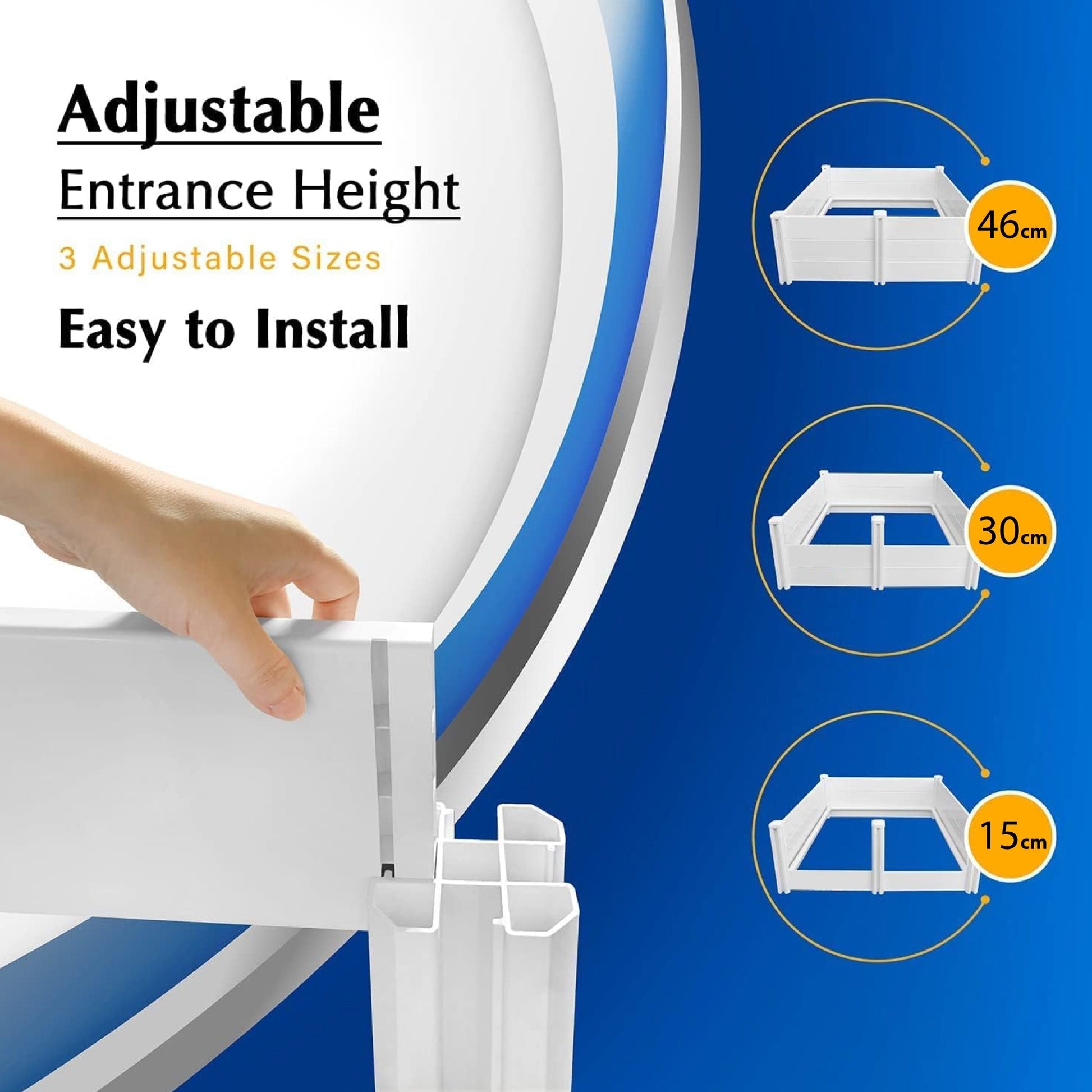 - Adjustable Entry / Exit Height: Simply add or remove short slat to adjust and control the entry and exit of the mother, while keeping the puppies safe inside. This allows for customisation according to the size of the mother or the puppies' growth stages.