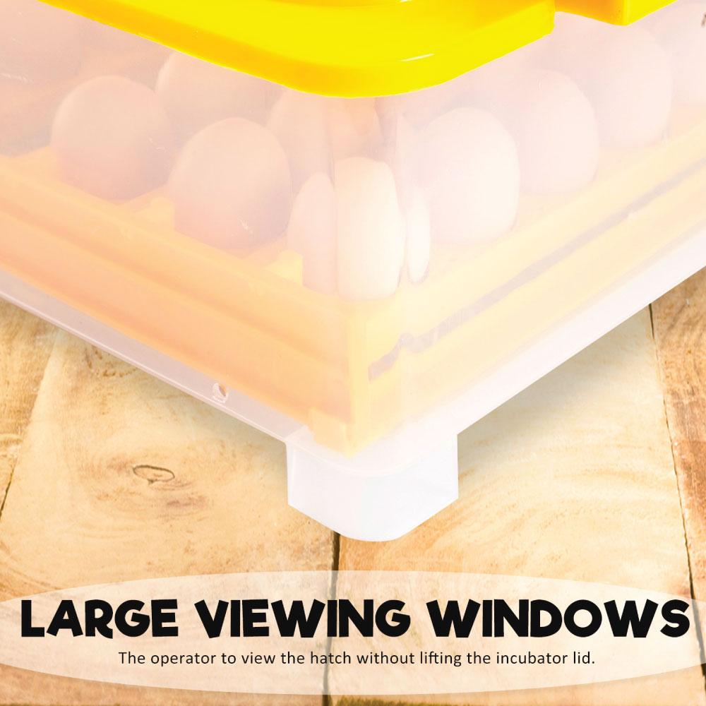 Includes an auto turning tray, hatchery days count, and electric LED Digital screen. With a simple and smart digital design, anyone can use our egg incubators easily, beginner or professional. The transparent case allows easy monitoring.